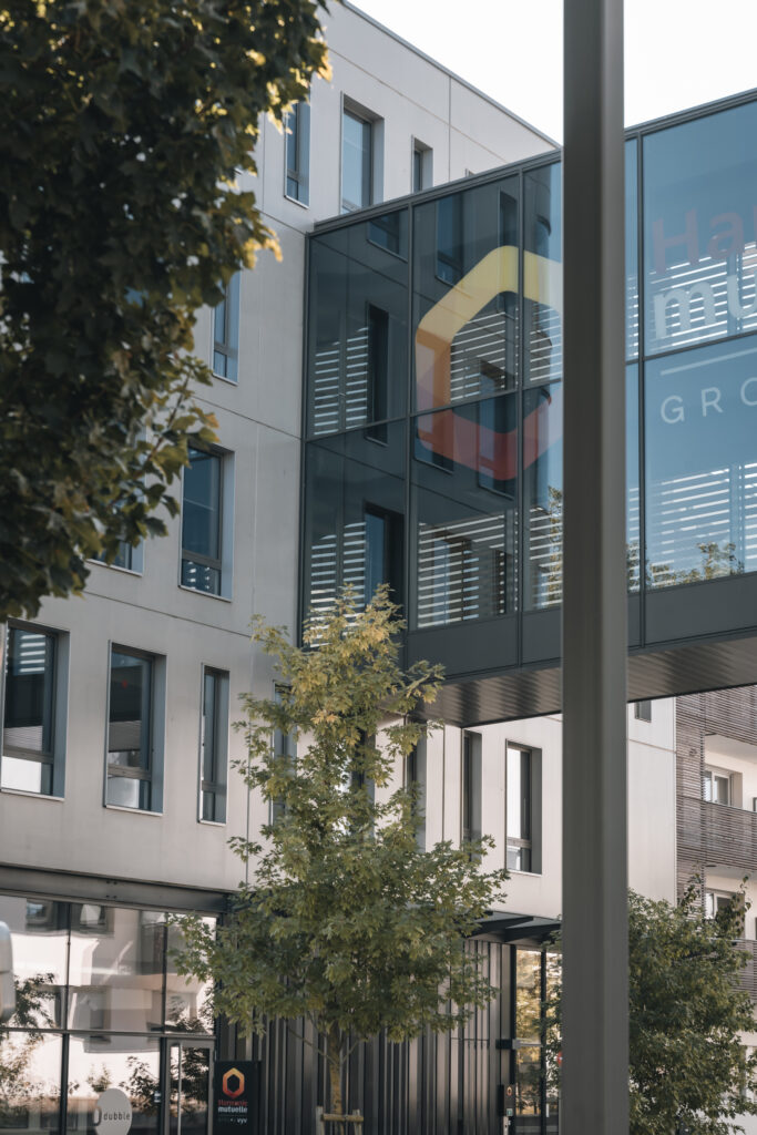 À Laxou (54), Harmonie Mutuelle a souhaité regrouper plusieurs de ses implantations dans un nouveau siège unique et moderne. Ce projet de construction s’inscrit dans une logique d’optimisation des espaces de travail et de création d’un lieu convivial favorisant la collaboration.
